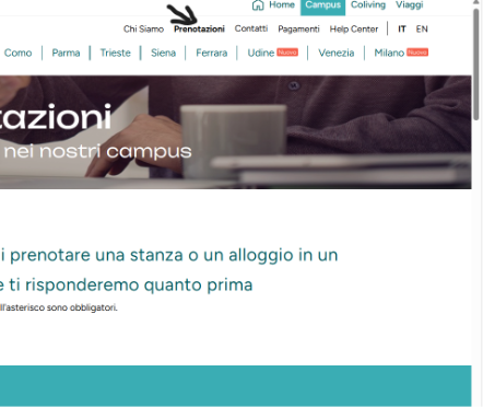 Puoi effettuare la prenotazione visitando il sito www.joivy.com e cliccando sulla sezione Campus. Nella sezione Prenotazioni troverai un form da compilare in pochi secondi. Dopo averlo inviato, riceverai informazioni personalizzate e un preventivo su misura. I nostri operatori ti risponderanno al più presto.